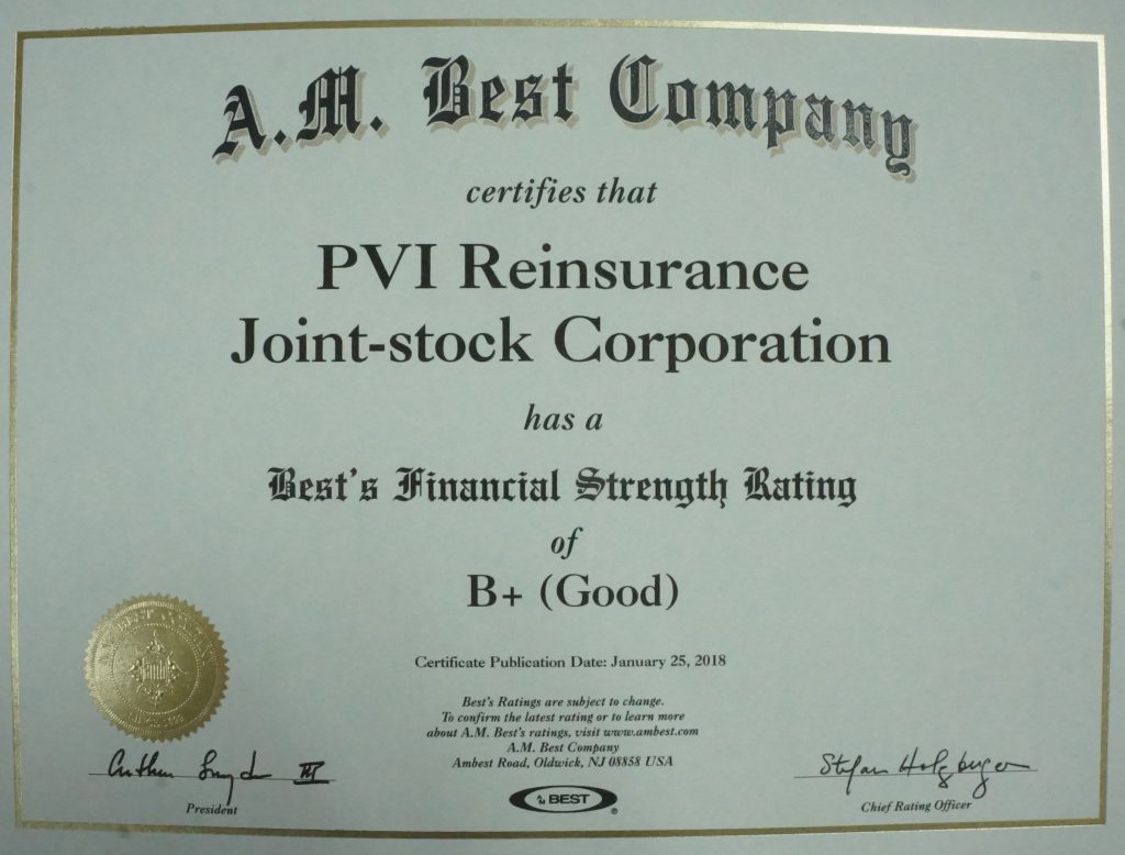 A.M.Best tiếp tục khẳng định xếp hạng năng lực tài chính của PVIRe là B+ (Tốt), xếp hạng năng lực dài hạn tổ chức phát hành là bbb-, triển vọng của năng lực tài chính và năng lực tín dụng của công ty ở mức ổn định