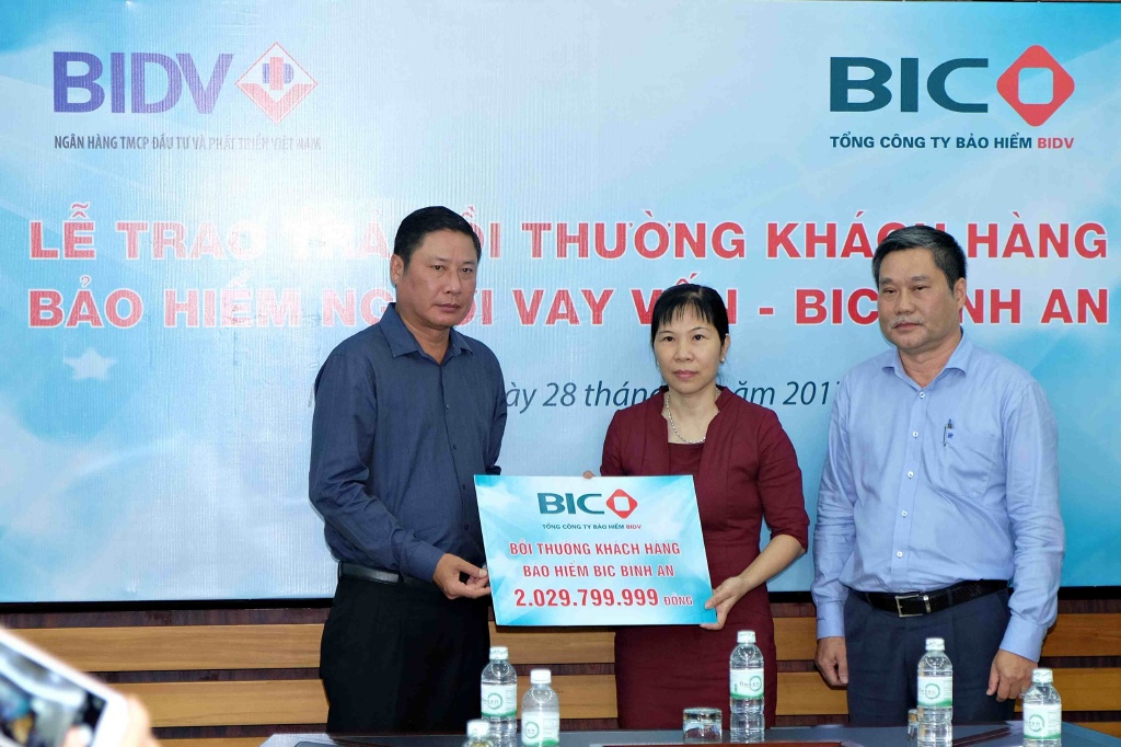 Ngày 28/8/2017, tại Trụ sở Ngân hàng TMCP Đầu tư và Phát triển Việt Nam – Chi nhánh Khánh Hòa, Tổng Công ty Bảo hiểm BIDV (BIC) đã trao hơn 2 tỷ đồng tiền bảo hiểm người vay vốn – BIC Bình An – cho gia đình khách hàng Chu Thanh Phương, trú tại TP. Nha Trang, tỉnh Khánh Hòa.