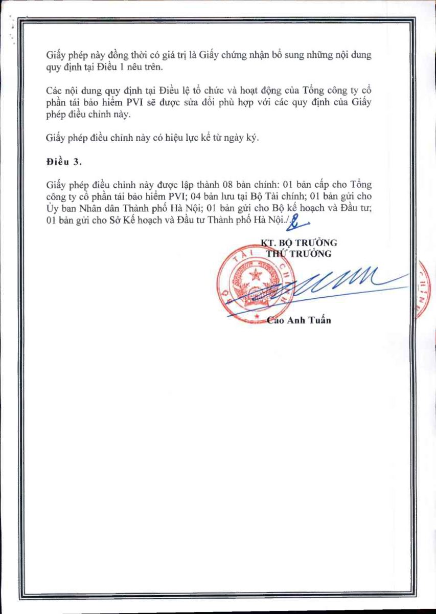 Tổng Công ty Cổ phần Tái bảo hiểm PVI đã chính thức được Bộ Tài Chính chấp thuận tăng vốn điều lệ của công ty lên 1.044 tỷ đồng theo Giấy phép điều chỉnh số 86/GPĐC4/KDBH cấp ngày 20/07/2023.