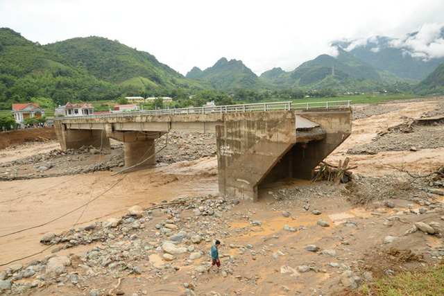 Cây cầu Nậm Păm ở Mường La – Sơn La bị trận mưa lũ đầu tháng 8/2017 làm hỏng 2 bên đầu cầu
