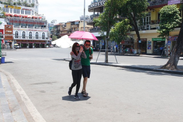 Nhiệt độ ngoài đường nhựa, đường bê tông vào trưa ngày 3/6/2017 tại nội thành Hà Nội lên tới gần 50 độ C