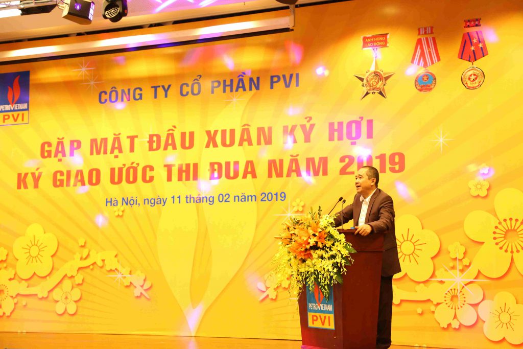 Tại buổi gặp mặt đầu Xuân đại diện lãnh đạo các công ty: Tổng công ty Bảo hiểm PVI, Tổng công ty Cổ phần Tái bảo hiểm PVI, Công ty Cổ phần Quản lý quỹ PVI, Công ty Cổ phần phát triển Tài sản Việt Nam đã phát biểu chúc tết và thể hiện sự quyết tâm thực hiện giao ước thi đua hoàn thành kế hoạch kinh doanh năm 2019.