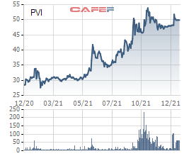 Diễn biến trên thị trường, cố phiếu PVI kết phiên 17/12 đạt 51.000 đồng/cổ phiếu, tương ứng tăng 72% từ đầu năm 2021 đến nay.