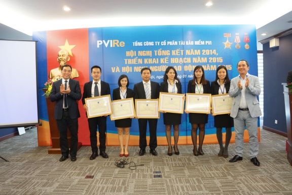 Để ghi nhận những nỗ lực, cố gắng của cán bộ nhân viên trong hoạt động kinh doanh năm 2014, tại Hội nghị, Lãnh đạo đã trao bằng khen các danh hiệu thi đua khen thưởng cho các Tập thể và cá nhân đã xuất sắc góp phần vào kết quả kinh doanh chung của PVIRe năm 2014.